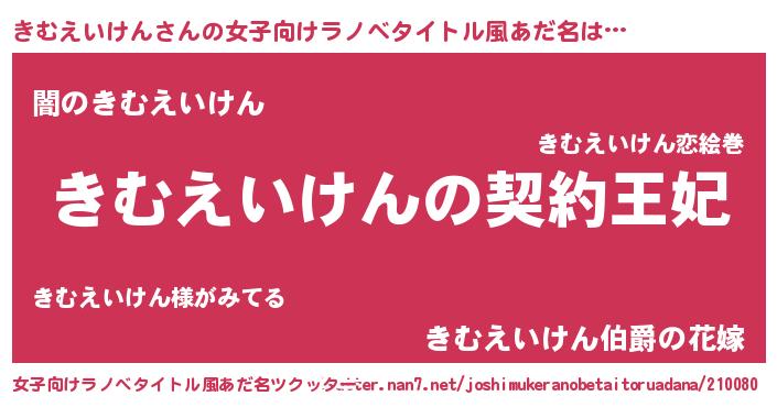 | 男性向けラノベタイトル風あだ名 | 『きむえいけんという概念が存在しない退屈な世界 』 |