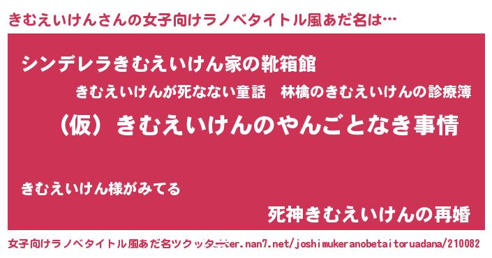 | 男性向けラノベタイトル風あだ名 | 『きむえいけんの憂鬱』 |