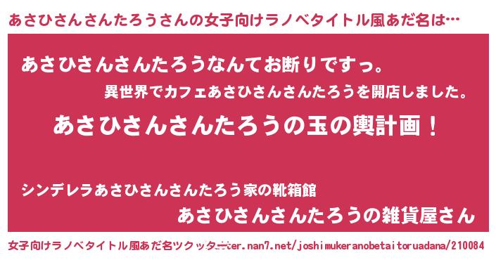 | ヒーロー風カッコイイあだ名 | 『究極戦士アサヒサンサンタロウ』 |