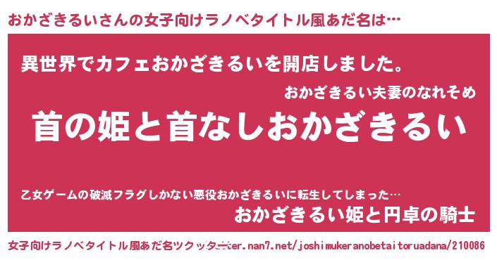 | 胡散臭い通販商品みたいなあだ名 | 『絶対に幸福をもたらす水素水…その名も「おかざきるい」』 |