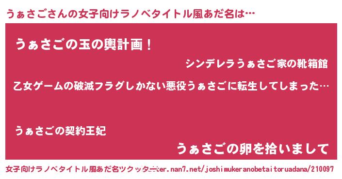 | 意味不明あだ名 | 『住所不定無職うぁさご(95歳)』 |