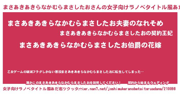 | 男性向けラノベタイトル風あだ名 | 『やはりまさあきあきらなかむらまさしたおの青春ラブコメはまちがっている 』 |