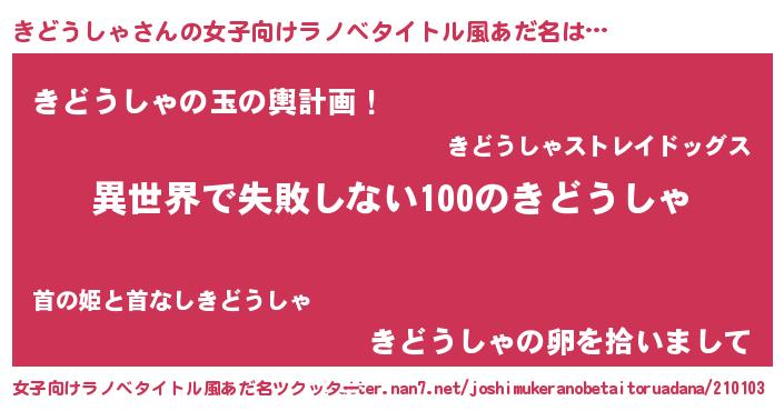 | 胡散臭い通販商品みたいなあだ名 | 『絶対に幸福をもたらす健康食品…その名も「きどうしゃ」』 |