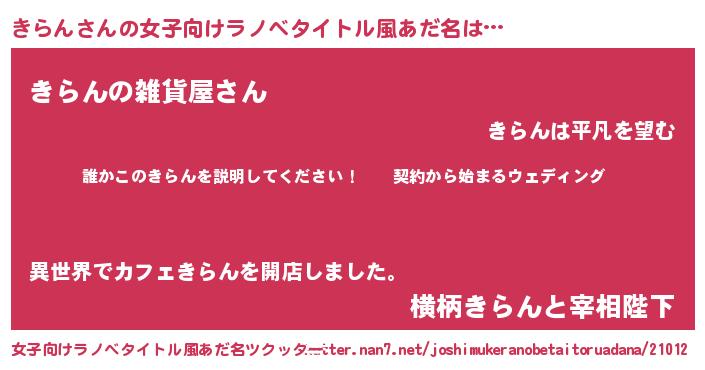 | 胡散臭い通販商品みたいなあだ名 | 『億万長者になれるブレスレット…その名も「きらん」』 |