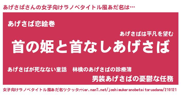 | 男性向けラノベタイトル風あだ名 | 『はたらくあげさばさま!』 |