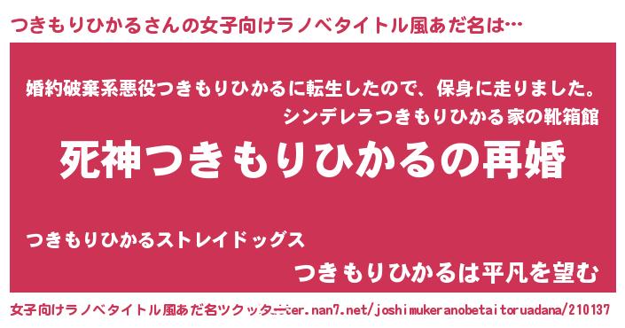 | 男性向けラノベタイトル風あだ名 | 『ノーゲーム・ノーツキモリヒカル』 |