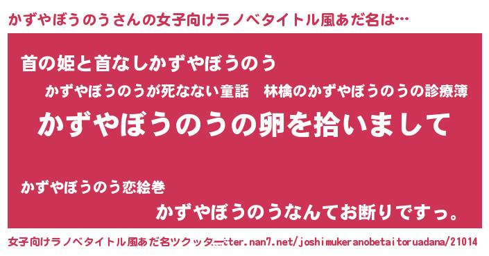 | 男性向けラノベタイトル風あだ名 | 『ダンジョンにかずやぼうのうを求めるのは間違っているだろうか』 |