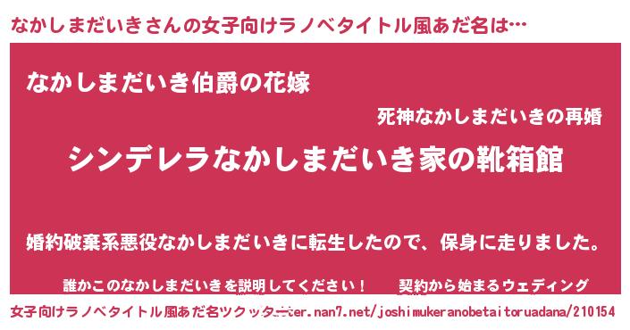 | 男性向けラノベタイトル風あだ名 | 『冴えないなかしまだいきの育てかた』 |