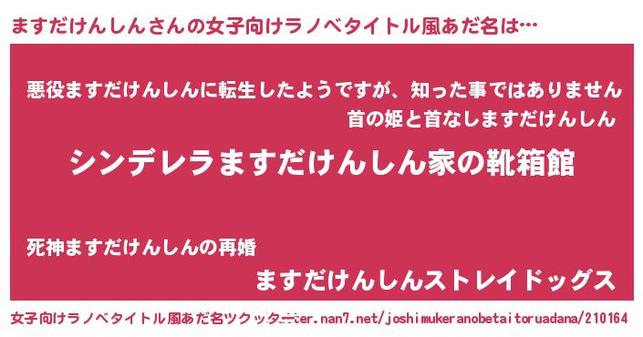| 意味不明あだ名 | 『住所不定無職ますだけんしん(65歳)』 |