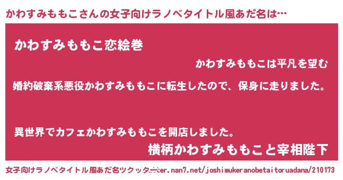 | 男性向けラノベタイトル風あだ名 | 『カワスミモモコスレイヤー』 |