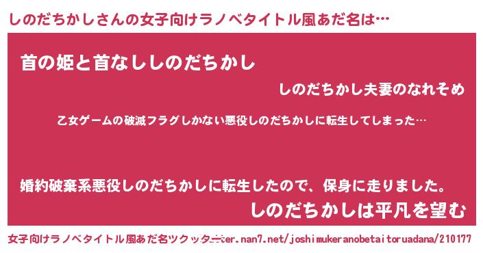 | 意味不明あだ名 | 『住所不定無職しのだちかし(98歳)』 |