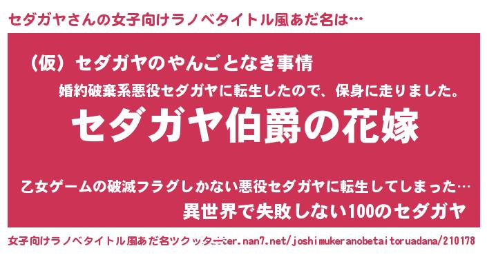 | ファンタジー風あだ名 | 『エターナルセダガヤー』『セダフェル』 |
