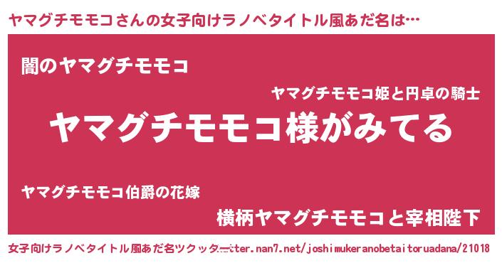 | 男性向けラノベタイトル風あだ名 | 『ヤマグチモモコの嫁は女の子じゃないと思った?』 |