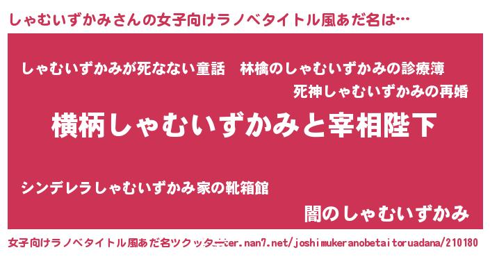 | 男性向けラノベタイトル風あだ名 | 『しゃむいずかみに滅ぼされるだけの簡単なお仕事です』 |
