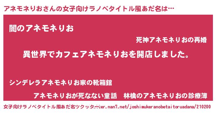 | 意味不明あだ名 | 『永久保存アネモネりお』 |