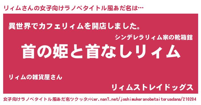 | 胡散臭い通販商品みたいなあだ名 | 『絶対に幸福をもたらす健康食品…その名も「リィム」』 |