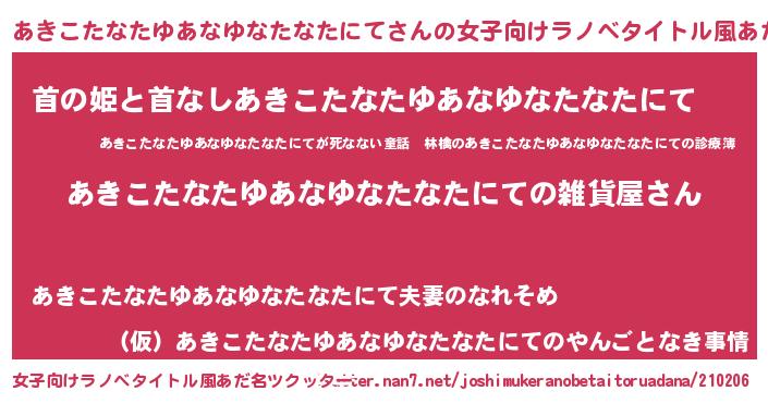 | 男性向けラノベタイトル風あだ名 | 『やはりあきこたなたゆあなゆなたなたにての青春ラブコメはまちがっている 』 |