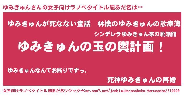 | 男性向けラノベタイトル風あだ名 | 『転生したらゆみきゅんだった件』 |
