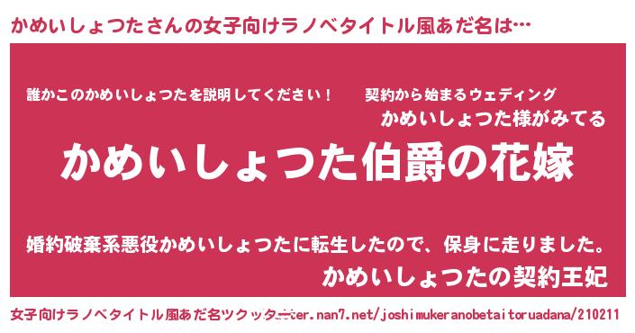 | 男性向けラノベタイトル風あだ名 | 『やはりかめいしょつたの青春ラブコメはまちがっている 』 |