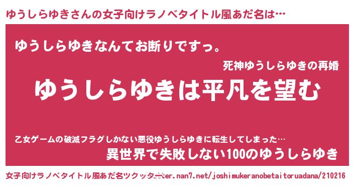 | 胡散臭い通販商品みたいなあだ名 | 『信頼と実績のネックレス…その名も「ゆうしらゆき」』 |