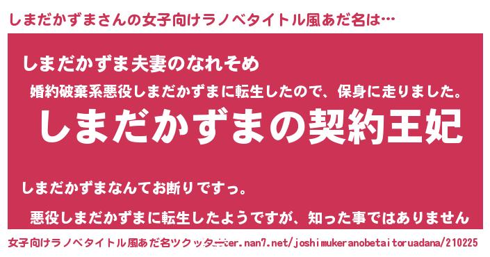 | 男性向けラノベタイトル風あだ名 | 『しまだかずまという概念が存在しない退屈な世界 』 |