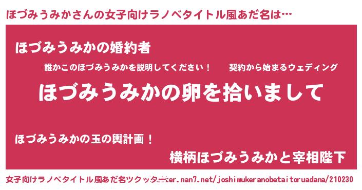 | 男性向けラノベタイトル風あだ名 | 『ほづみうみかの嫁は女の子じゃないと思った?』 |
