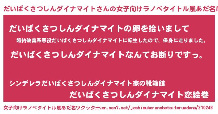 | 男性向けラノベタイトル風あだ名 | 『魔法科高校のだいばくさつしんダイナマイト』 |