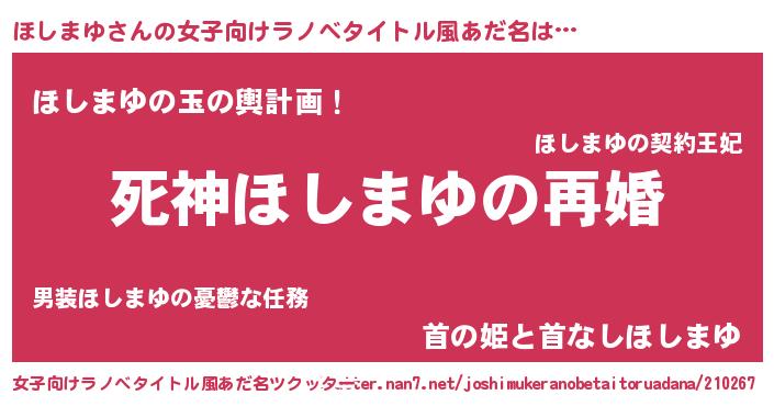 | ヘコむあだ名 | 『ほしまゆ(笑)』『酢こんぶ』 |