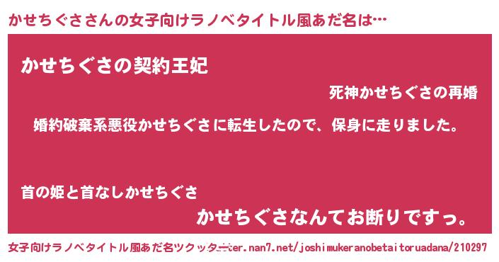 | 胡散臭い通販商品みたいなあだ名 | 『絶対に幸福をもたらす招き猫…その名も「かせちぐさ」』 |