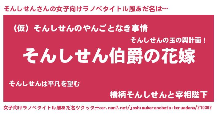 | 胡散臭い通販商品みたいなあだ名 | 『世界が平和になる高級そうな壺…その名も「そんしせん」』 |