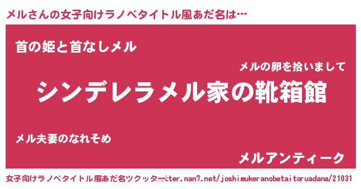 | 男性向けラノベタイトル風あだ名 | 『緋弾のメル』『はたらくメルさま!』 |