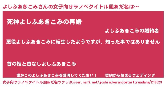 | 意味不明あだ名 | 『住所不定無職よしふあきこみ(84歳)』 |