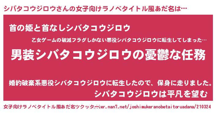 | 意味不明あだ名 | 『とにかく怪しいシバタコウジロウ』 |