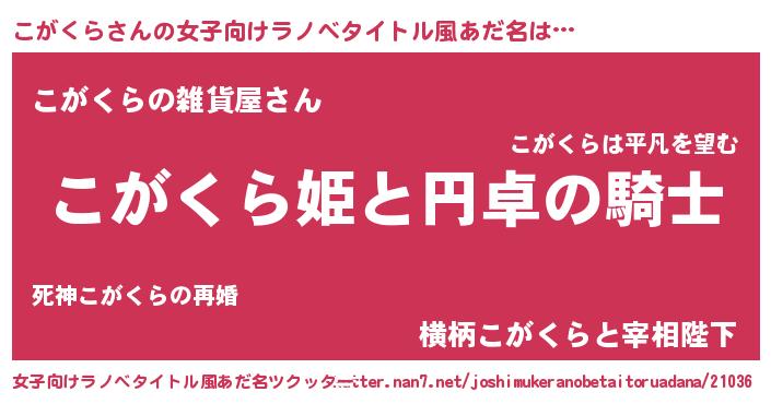 | ファンタジー風あだ名 | 『コガフェル』『エターナルコガクラー』 |