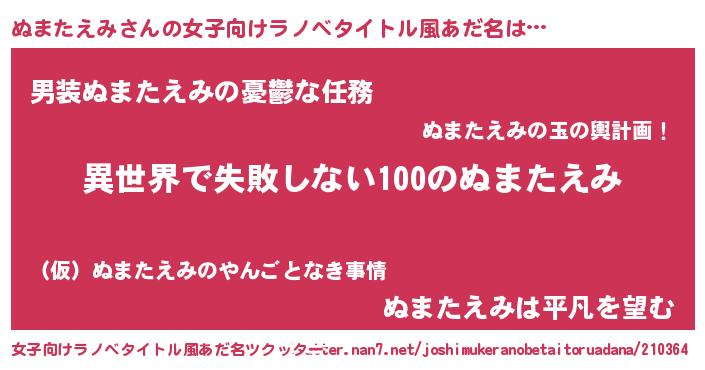 | 男性向けラノベタイトル風あだ名 | 『ぬまたえみという概念が存在しない退屈な世界 』 |