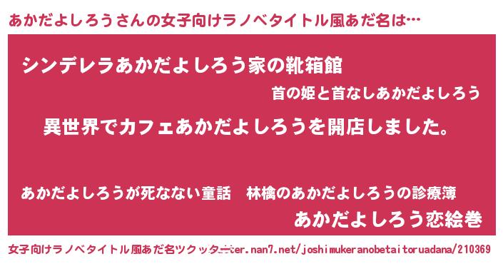 | 意味不明あだ名 | 『永久保存あかだよしろう』 |
