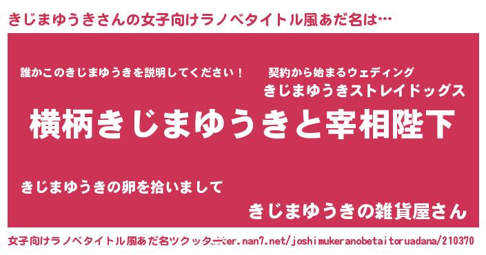 | 男性向けラノベタイトル風あだ名 | 『きじまゆうきに滅ぼされるだけの簡単なお仕事です』 |