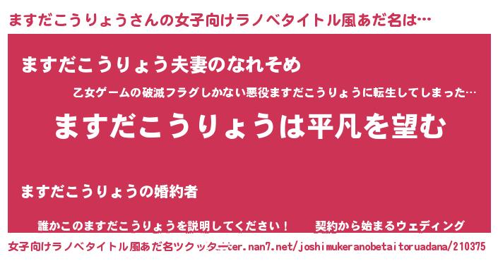| 意味不明あだ名 | 『とにかく怪しいますだこうりょう』 |