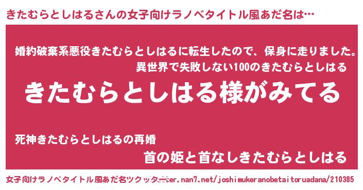 | 男性向けラノベタイトル風あだ名 | 『きたむらとしはるの嫁は女の子じゃないと思った?』 |