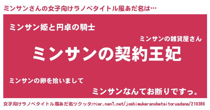 | 胡散臭い通販商品みたいなあだ名 | 『来世でも幸せになれる水素水…その名も「ミンサン」』 |
