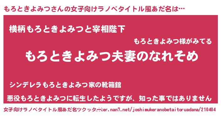 | 胡散臭い通販商品みたいなあだ名 | 『100人中100人が認めたマグネット磁石…その名も「もろときよみつ」』 |