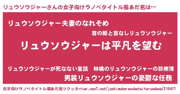 | 胡散臭い通販商品みたいなあだ名 | 『信頼と実績のサプリメント…その名も「リュウソウジャー」』 |