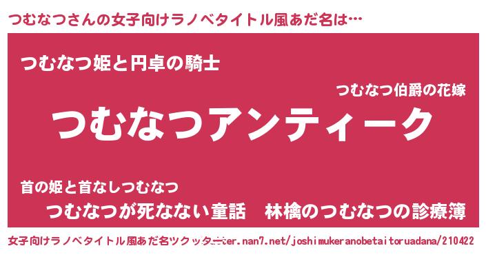 | 欧米人風あだ名 | 『ケンブリッジつむなつ』 |