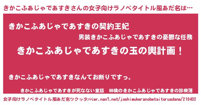 | 男性向けラノベタイトル風あだ名 | 『転生したらきかこふあじゃであすきだった件』 |