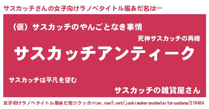 | 意味不明あだ名 | 『自称サスカッチ』『ペロリンサスカッチ』 |