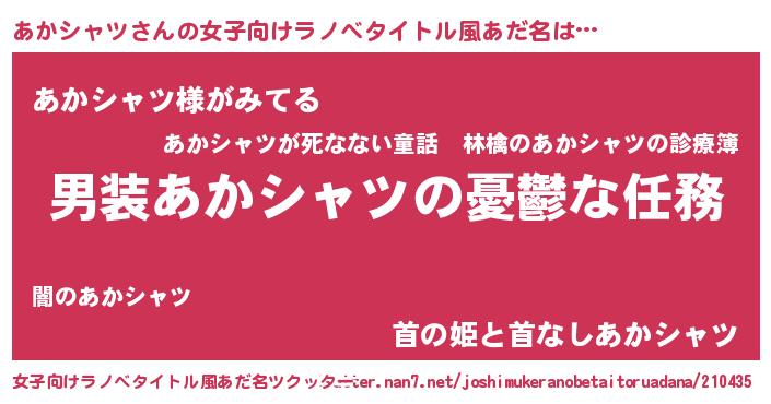 | 男性向けラノベタイトル風あだ名 | 『冴えないあかシャツの育てかた』 |