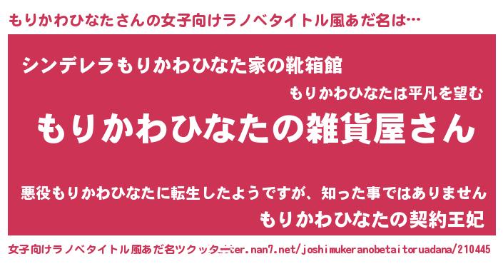 | 男性向けラノベタイトル風あだ名 | 『やはりもりかわひなたの青春ラブコメはまちがっている 』 |