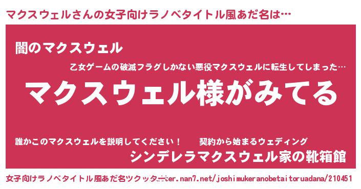 | ポケモン風あだ名 | 『ヒマクスウェル』『マクセウス』 |