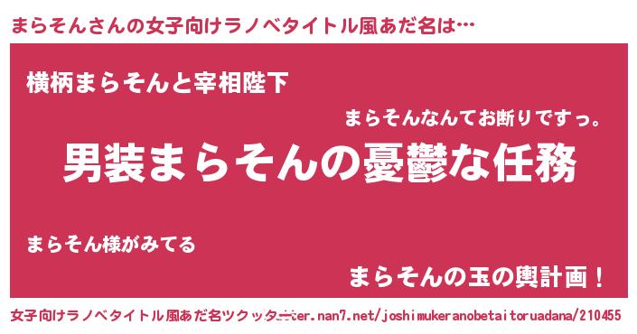 | 男性向けラノベタイトル風あだ名 | 『うちのまらそんが世界を掌握している!』 |