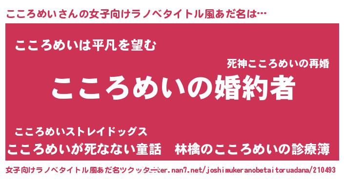 | 男性向けラノベタイトル風あだ名 | 『うちの娘の為ならば、俺はもしかしたらこころめいも倒せるかもしれない。』 |